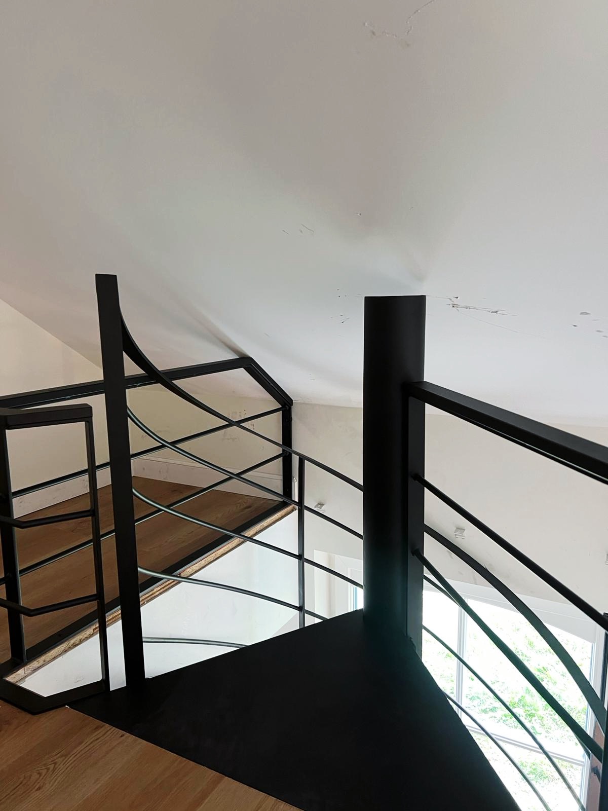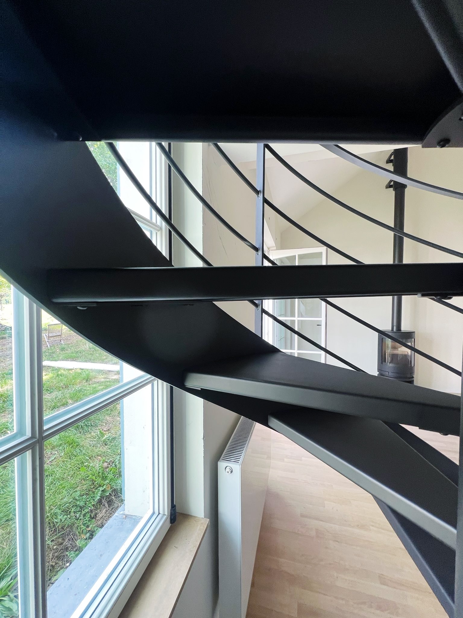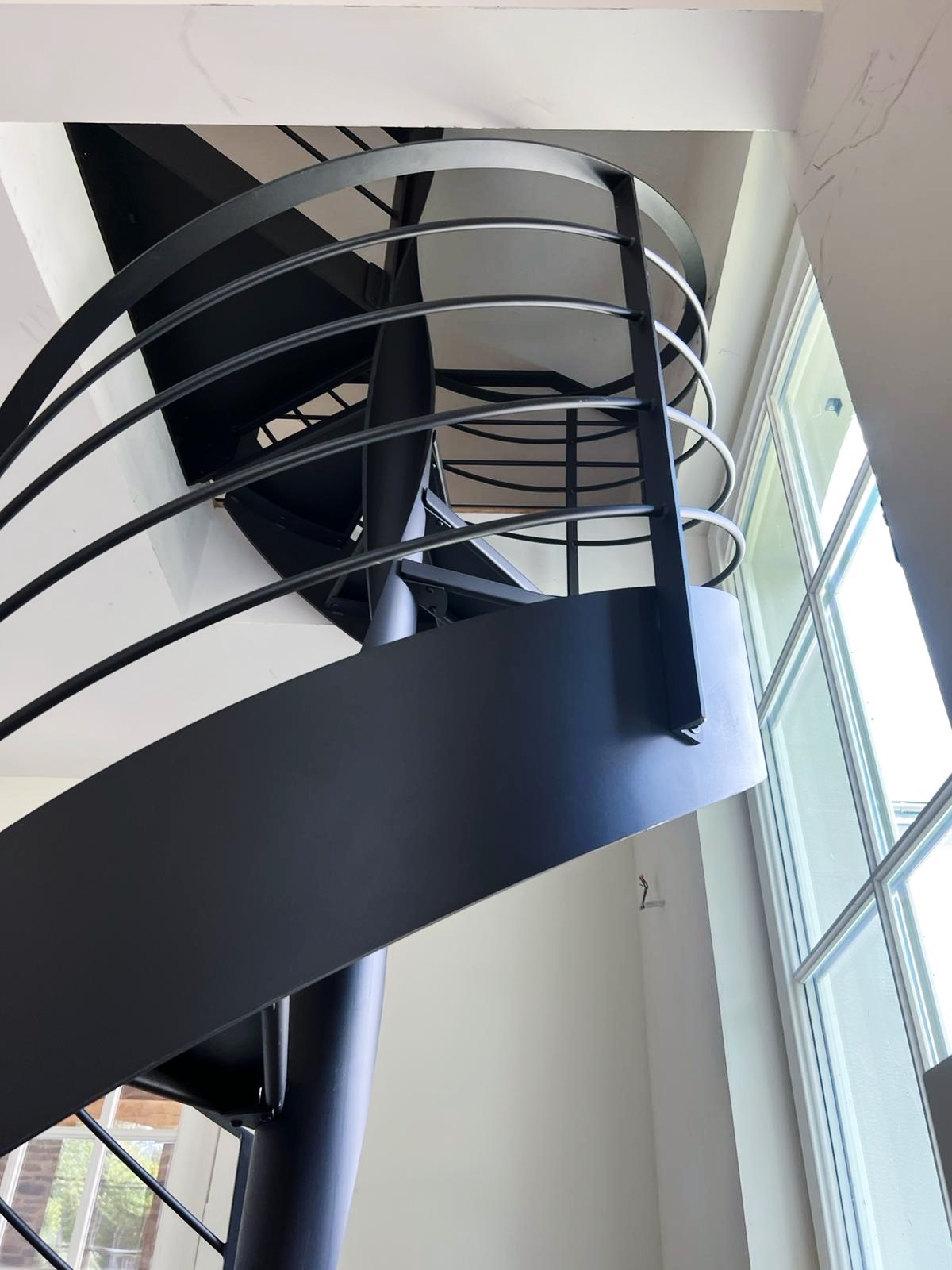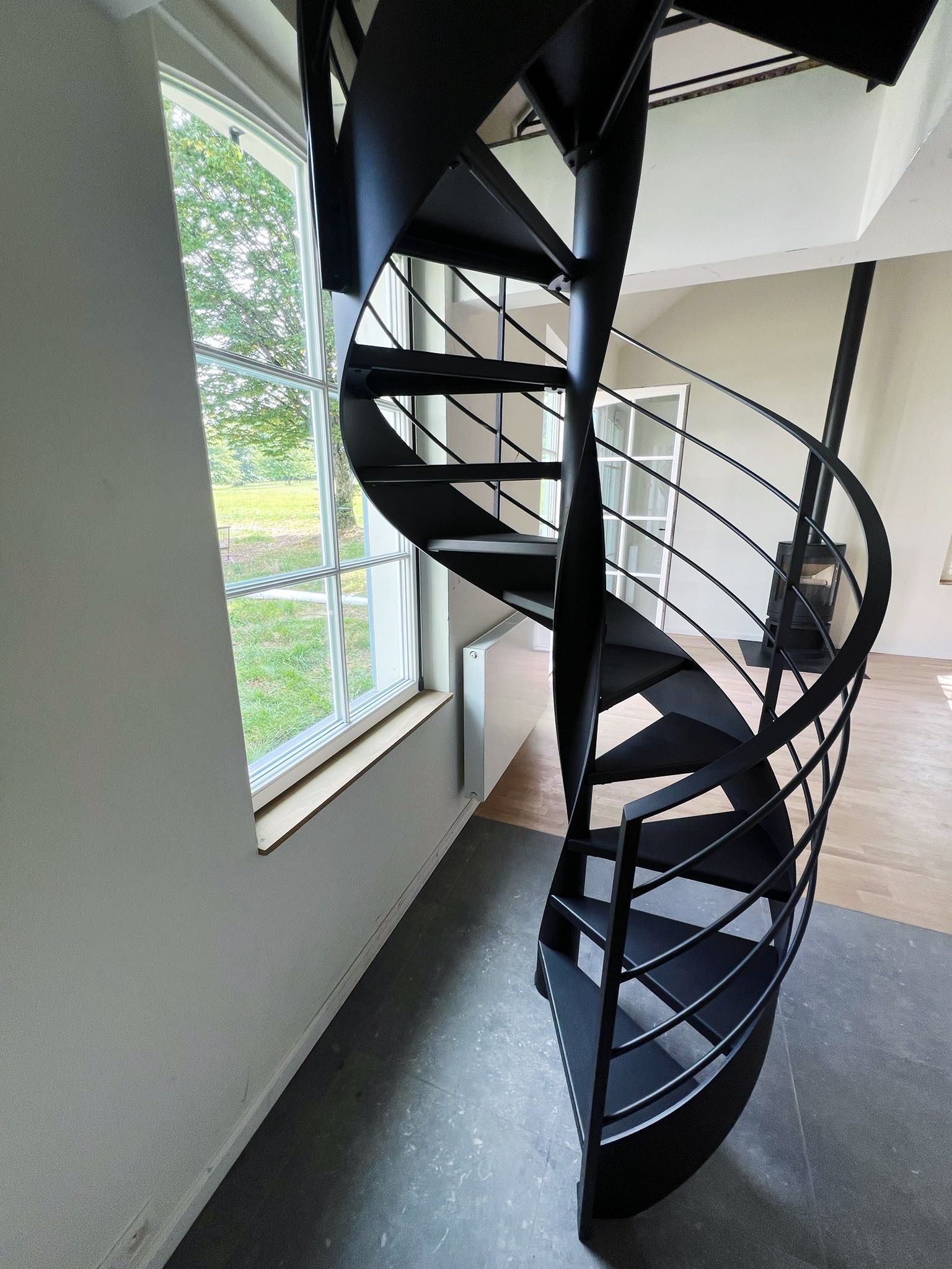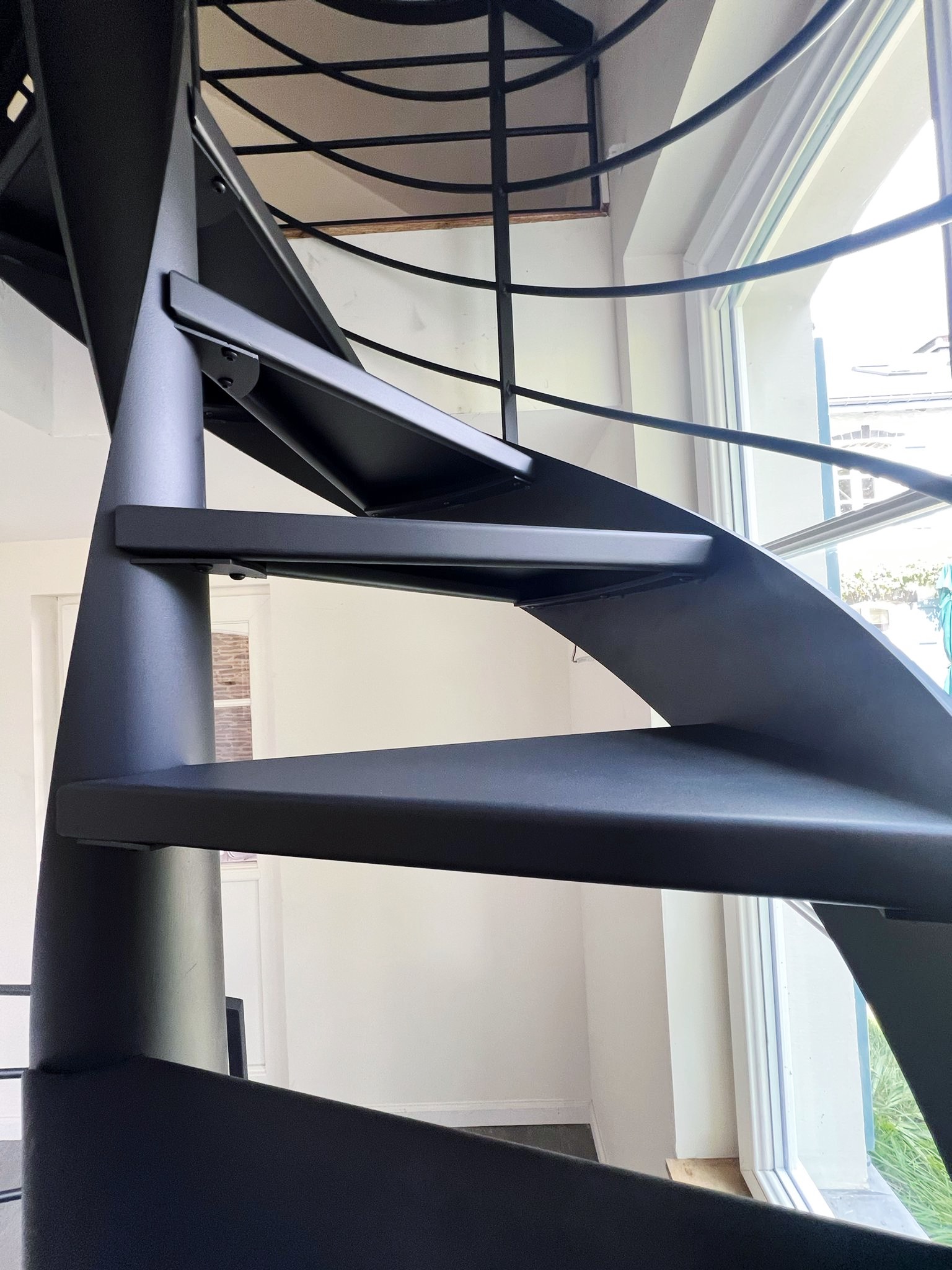 Le projet Bastogne met en œuvre un escalier hélicoïdal sculptural, entièrement réalisé en acier thermolaqué noir. Cette pièce d’exception s’accompagne d’un garde-corps sur-mesure, pour une parfaite cohérence visuelle. L’ensemble combine finesse d’exécution, précision technique et légèreté formelle, dans une spirale élégante et aérienne.