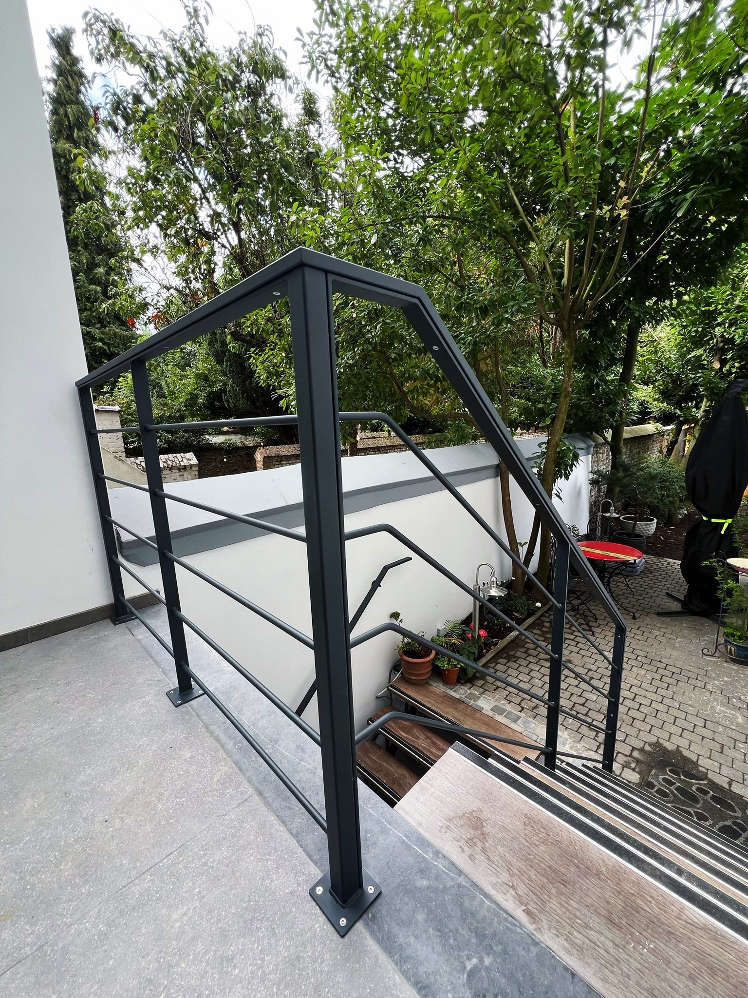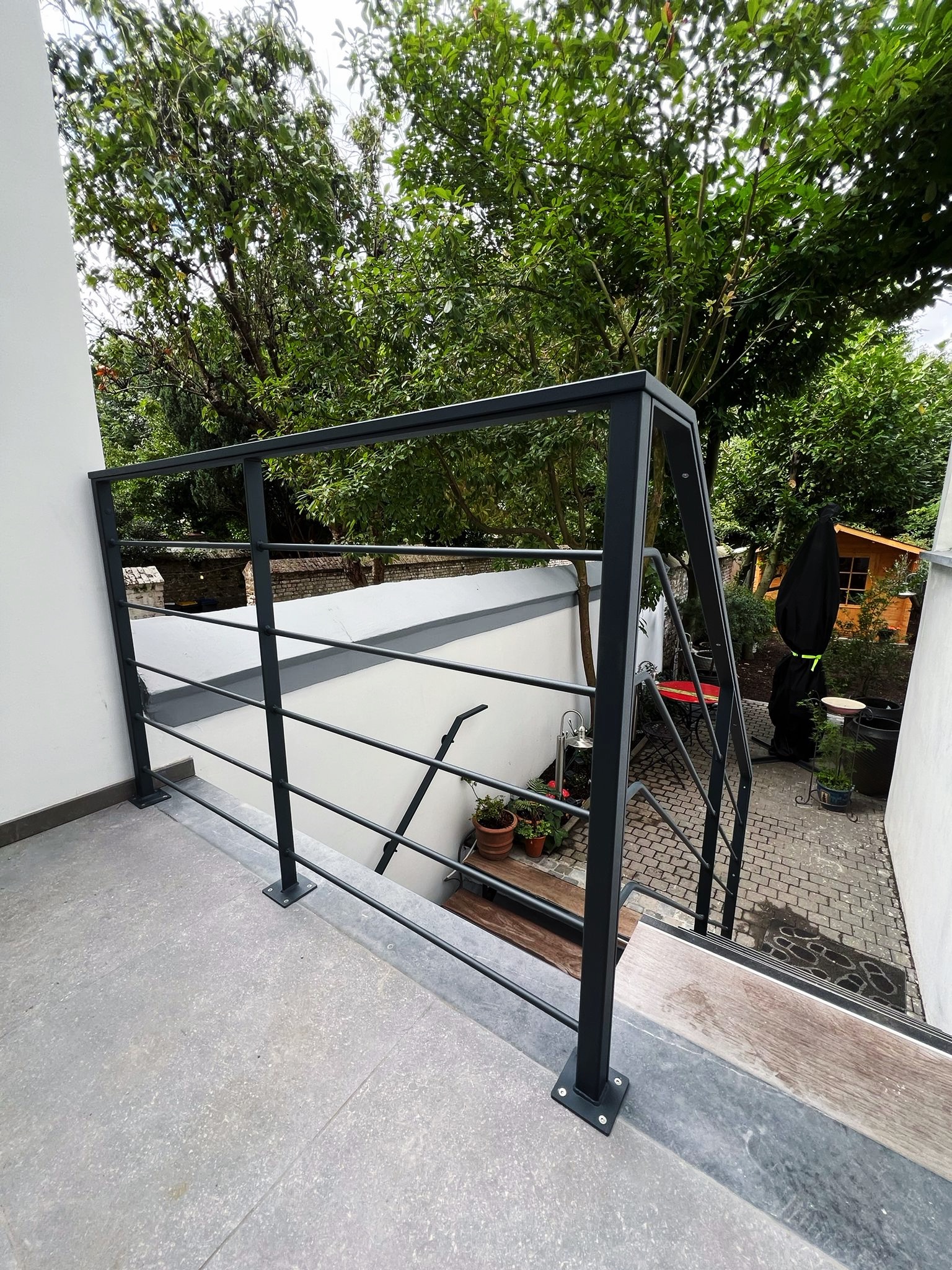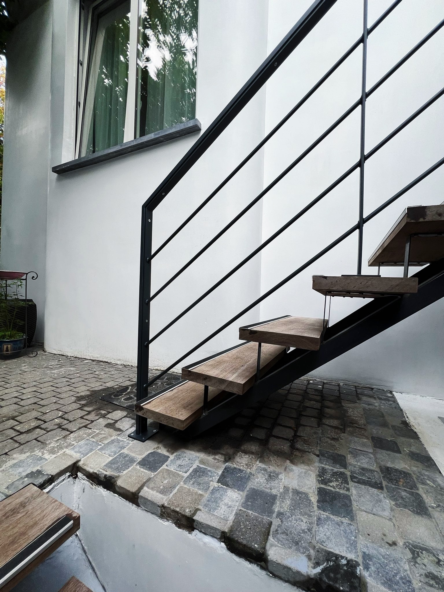 Le projet Général Jacques met en valeur un garde-corps et une main courante réalisés sur-mesure en acier thermolaqué noir. Pensé pour sécuriser un escalier extérieur urbain, l’ensemble se distingue par la sobriété de ses lignes et son intégration discrète. Une exécution précise où sécurité, esthétisme et cohérence architecturale se rencontrent.
