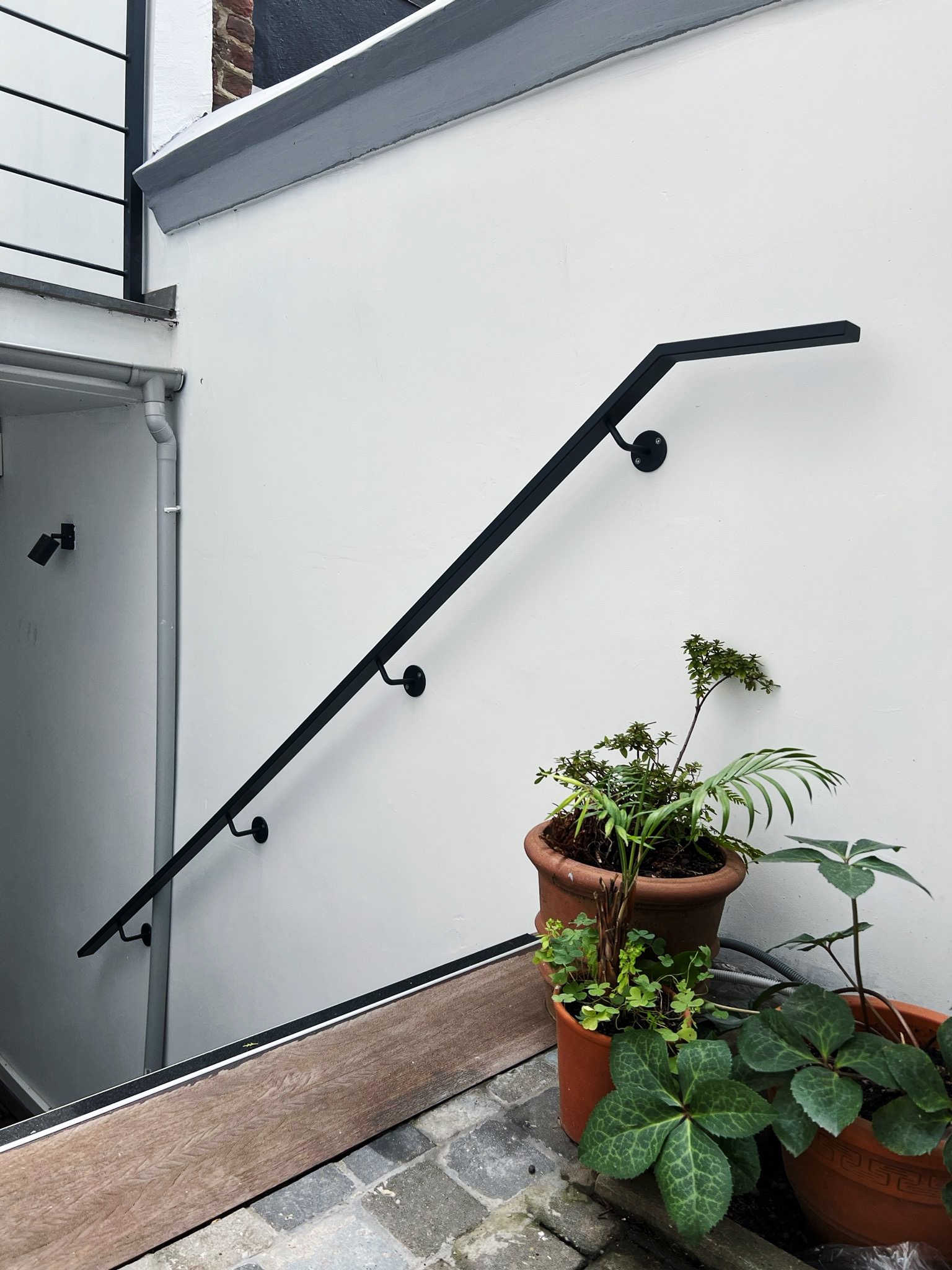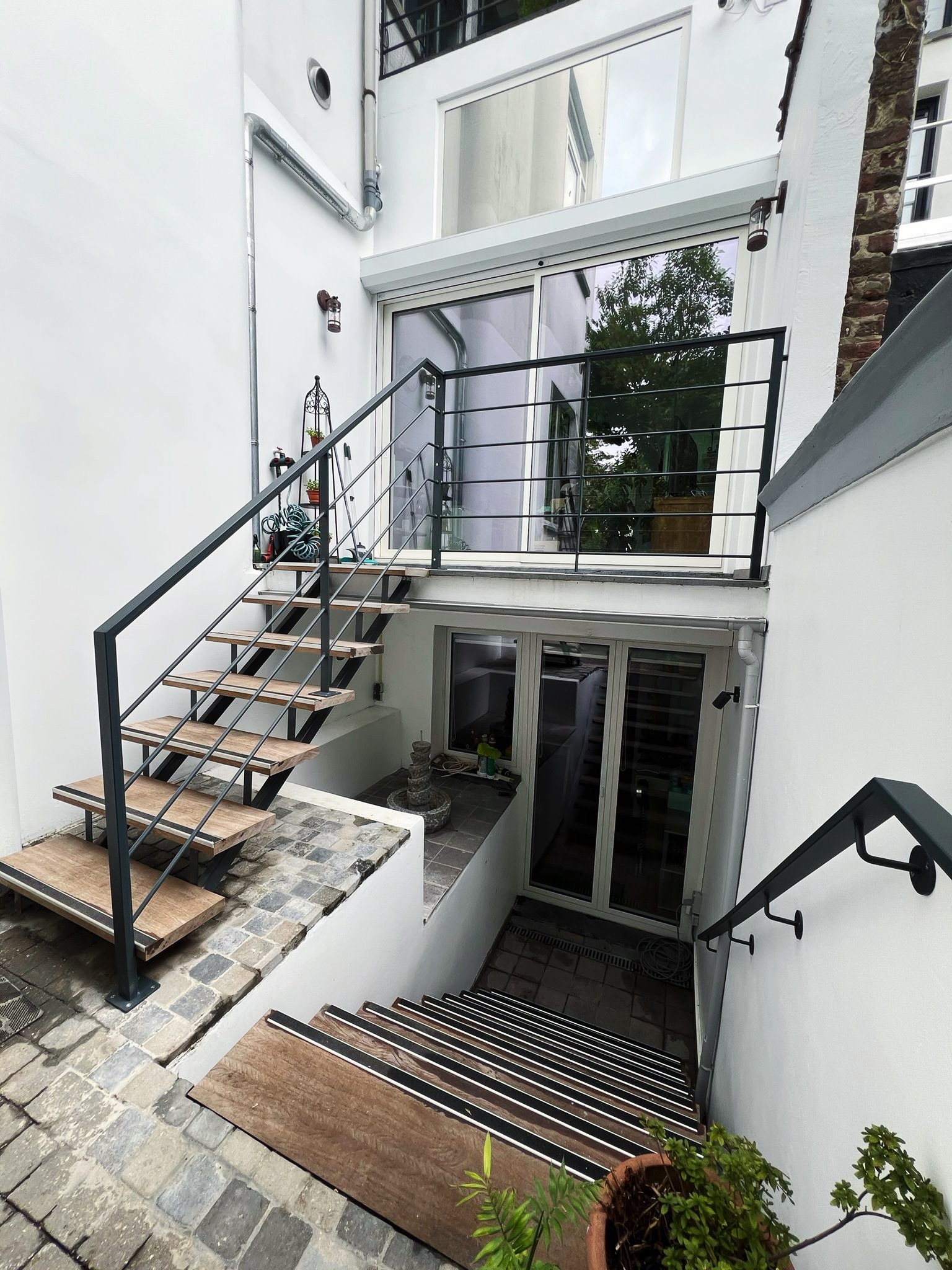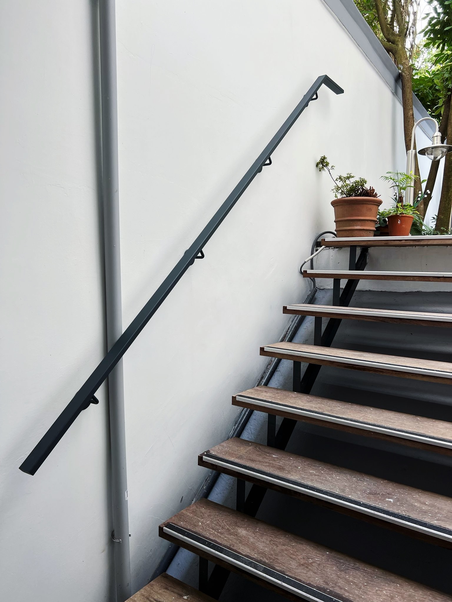 Le projet Général Jacques met en valeur un garde-corps et une main courante réalisés sur-mesure en acier thermolaqué noir. Pensé pour sécuriser un escalier extérieur urbain, l’ensemble se distingue par la sobriété de ses lignes et son intégration discrète. Une exécution précise où sécurité, esthétisme et cohérence architecturale se rencontrent.