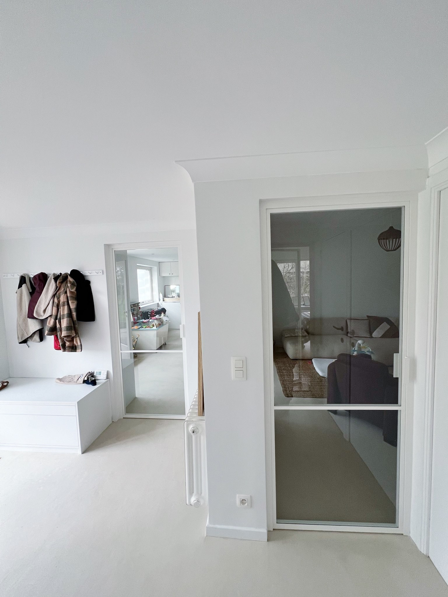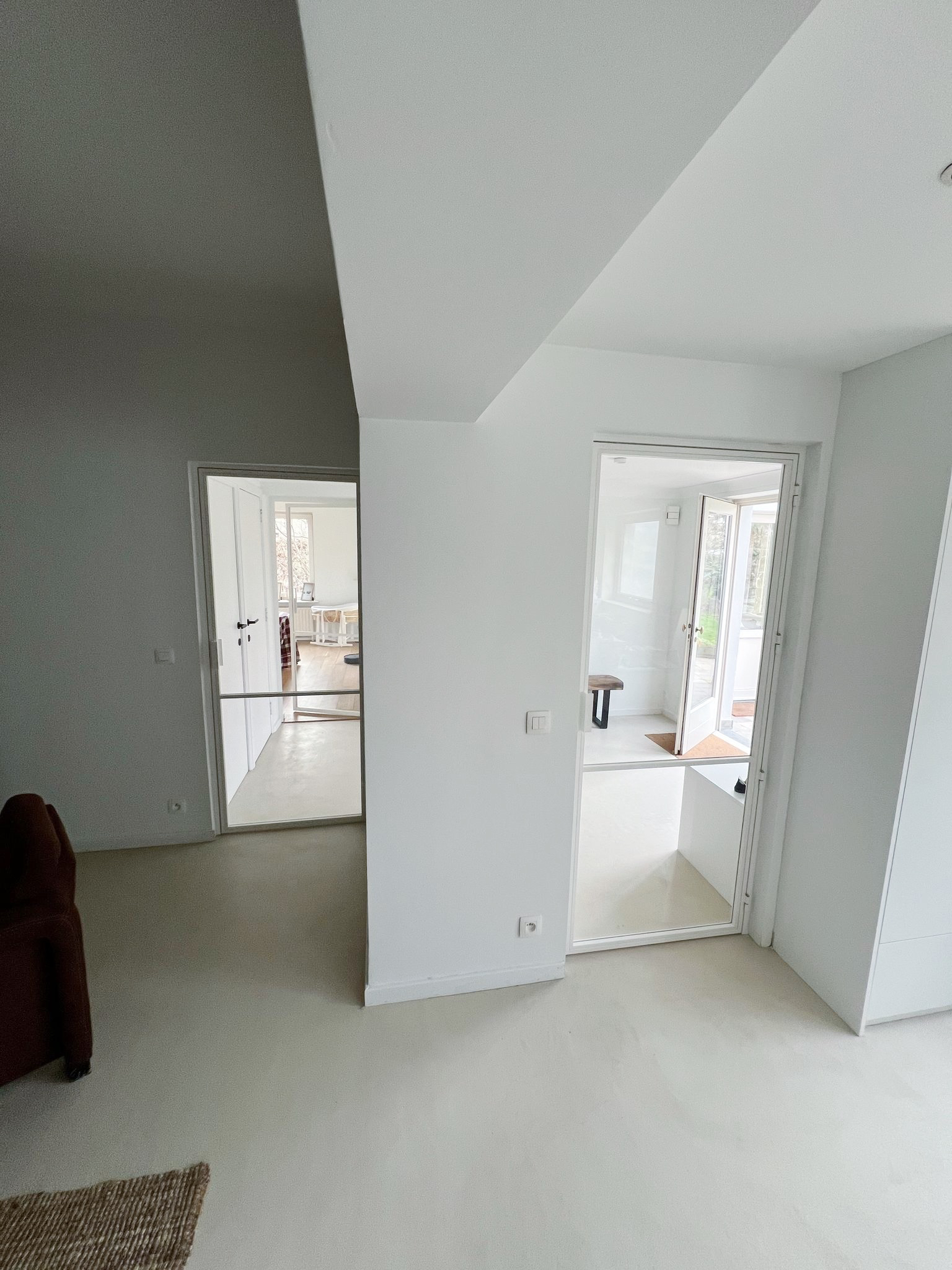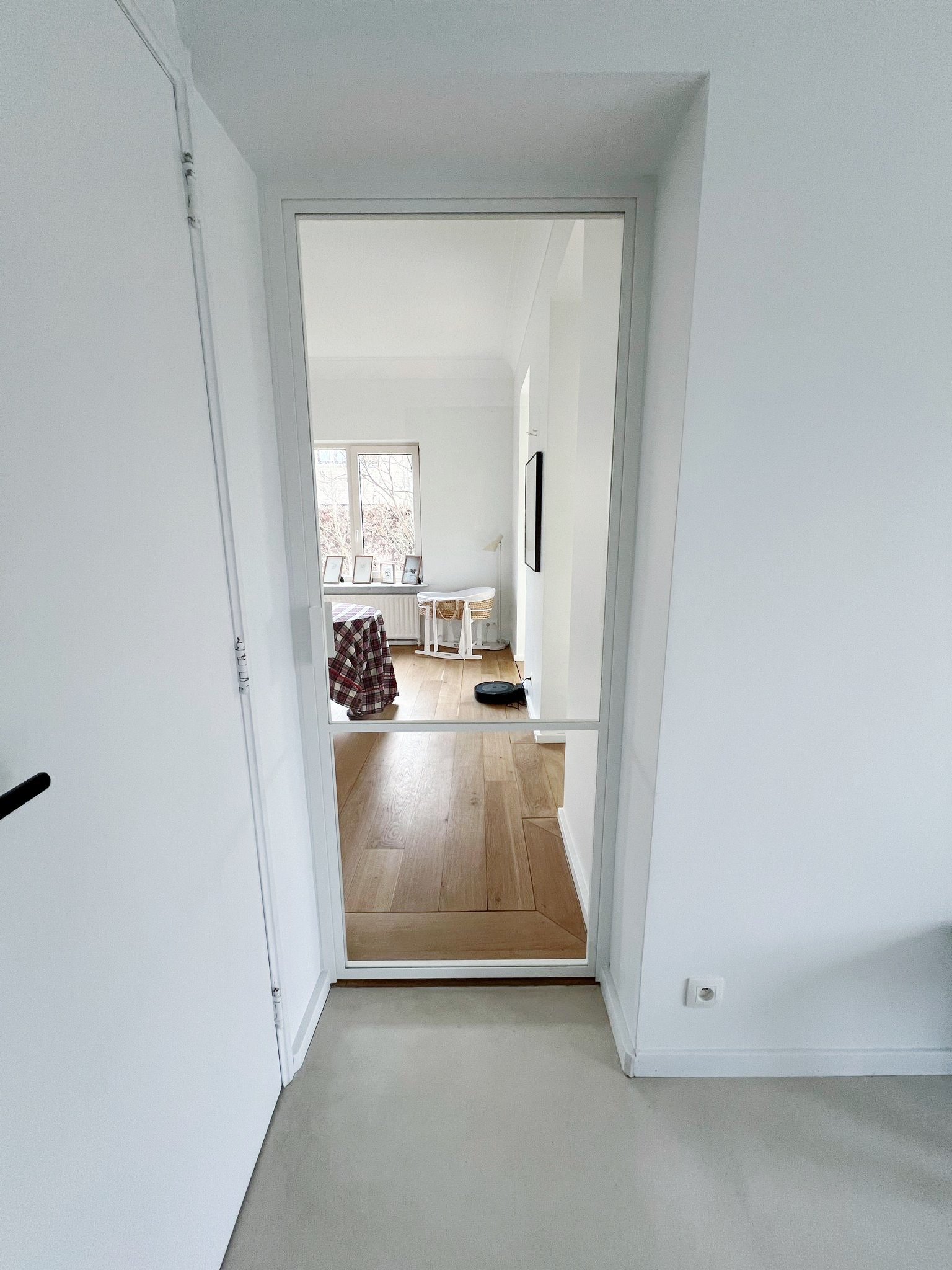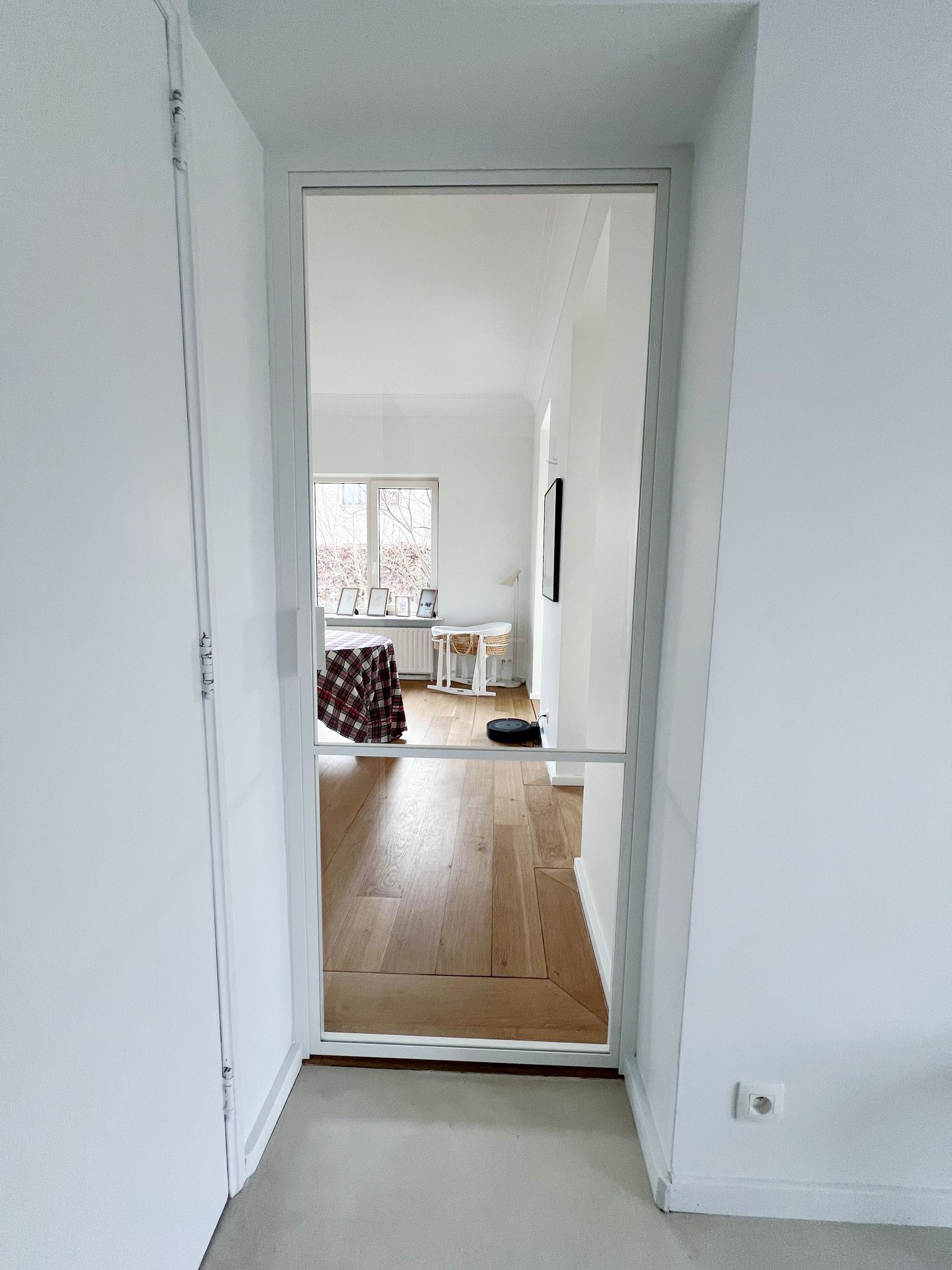 Le projet Pauline II met en valeur la conception et la pose de trois portes intérieures réalisées sur-mesure en acier thermolaqué blanc et verre transparent. Placées dans un hall d’entrée, elles permettent à la lumière naturelle de circuler librement tout en structurant l’espace avec élégance et sobriété.