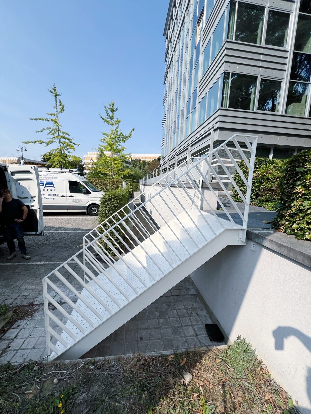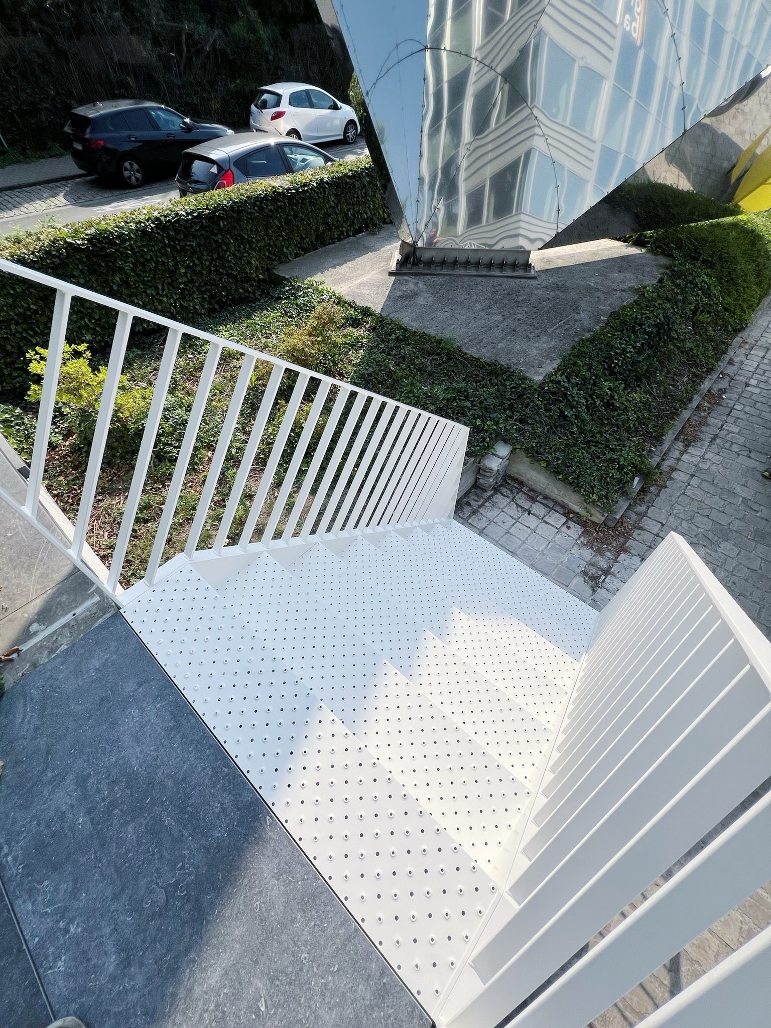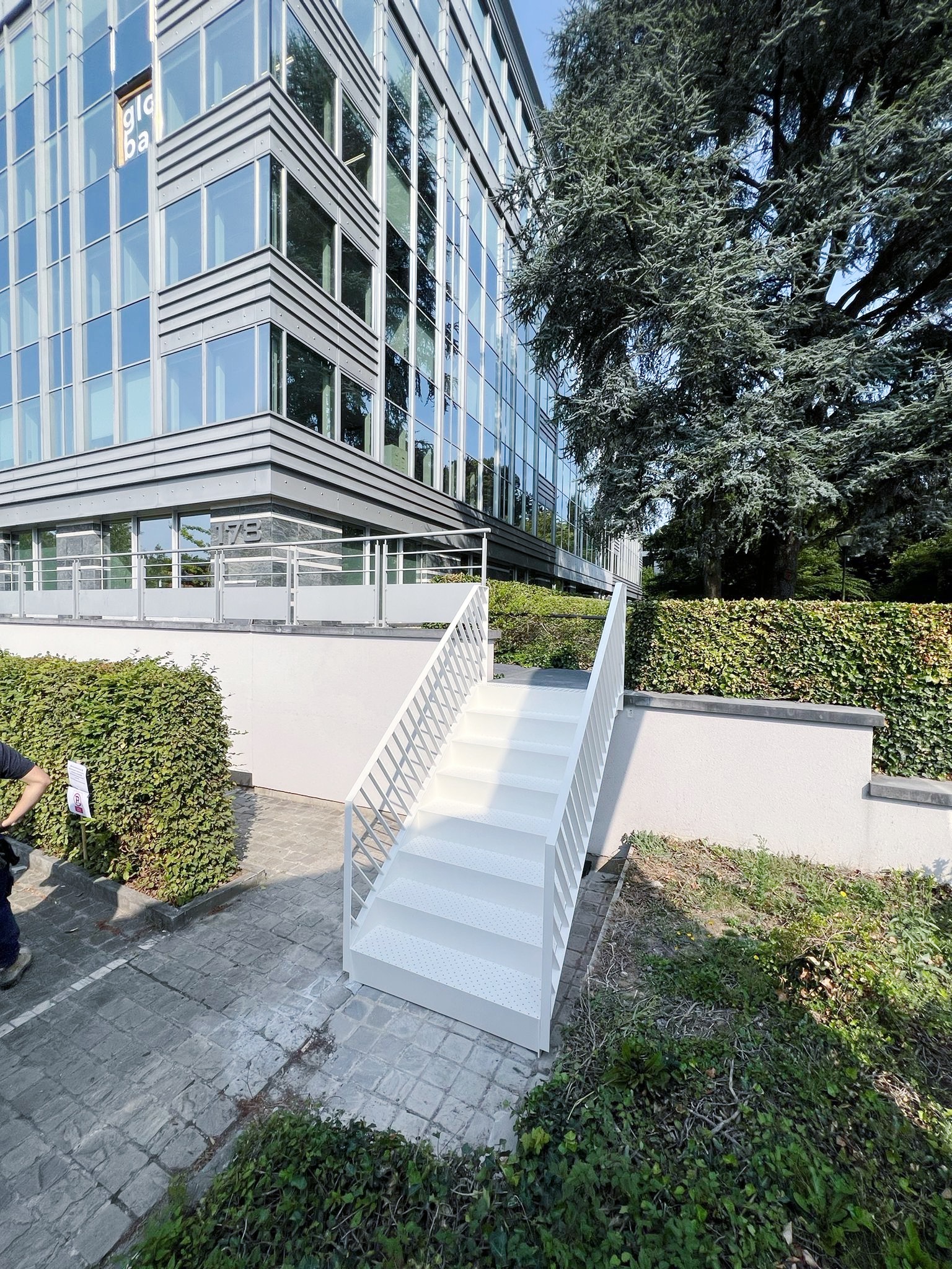 Le projet Strato met en scène un escalier extérieur réalisé en acier thermolaqué blanc. Conçu sur-mesure, il se distingue par ses lignes épurées et sa structure légère, parfaitement intégrée à l’architecture contemporaine. Une combinaison réussie entre esthétisme, durabilité et fonctionnalité.
